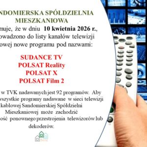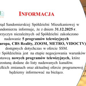Komunikat Szanowni Mieszkańcy, Członkowie Sandomierskiej Spółdzielni Mieszkaniowej w Sandomierzu Informujemy, że w związku z przejęciem od lipca 2024r. od Przedsiębiorstwa Energetyki Cieplnej ( PEC ) w Sandomierzu obowiązku rozliczania oraz windykacji należności…